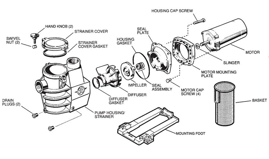 Hayward MaxFlo 2800 series pump replacement parts for models: SP2800X5, SP2805X7, SP2807X10, SP2810X15(2), SP2815X20.