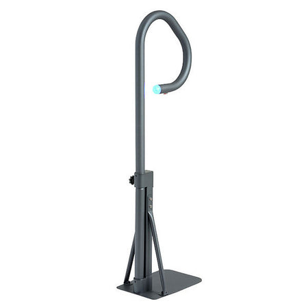 The Spa Side Handrail is an elegant and easy-to-use tool that assists you in getting in and out of your spa safely. This device offers a full 360° range of motion and can be locked in place for your safety and peace of mind. The undermount base is securely held in place by the weight of the water, so you don't need to screw it into the spa cabinet. The stylish carbon gray powder coat is enhanced by a battery-powered LED light on the inside curve of the rail.