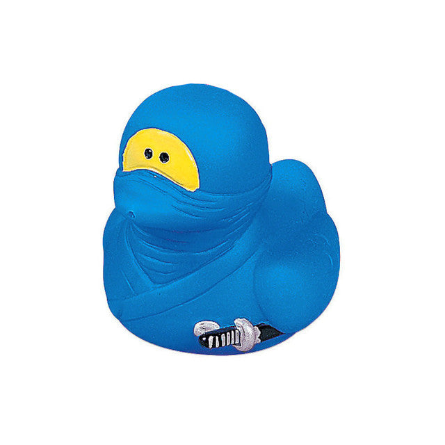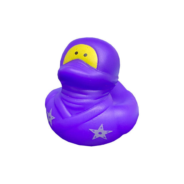 These stealthy fighter ducks wear colourful ninja costumes and are on a mission! Perfect for a birthday party, especially when placed on indoor or outdoor table tops. Available in assorted colours, select above. 2" Vinyl Duckies do not float upright.
